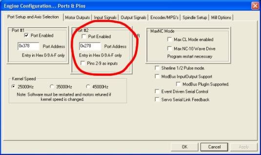I have a PCI card with two parallel ports, and have one parallel port on the motherboard. Each BOB is connected to a parallel port. I got the addresses for each port from device manager, and entered it in the ports and pins box. Both work when I enter their addresses here: ![]() Neither work when I enter their addresses here: ![]() Obviously I use the correct addresses, have the "port enabled" check box ticked. Therefore I think everything is fine and working, but that the issue lies with mach? Hopefully the "full" version won't have the issue? Or maybe I'm just missing something obvious.... |